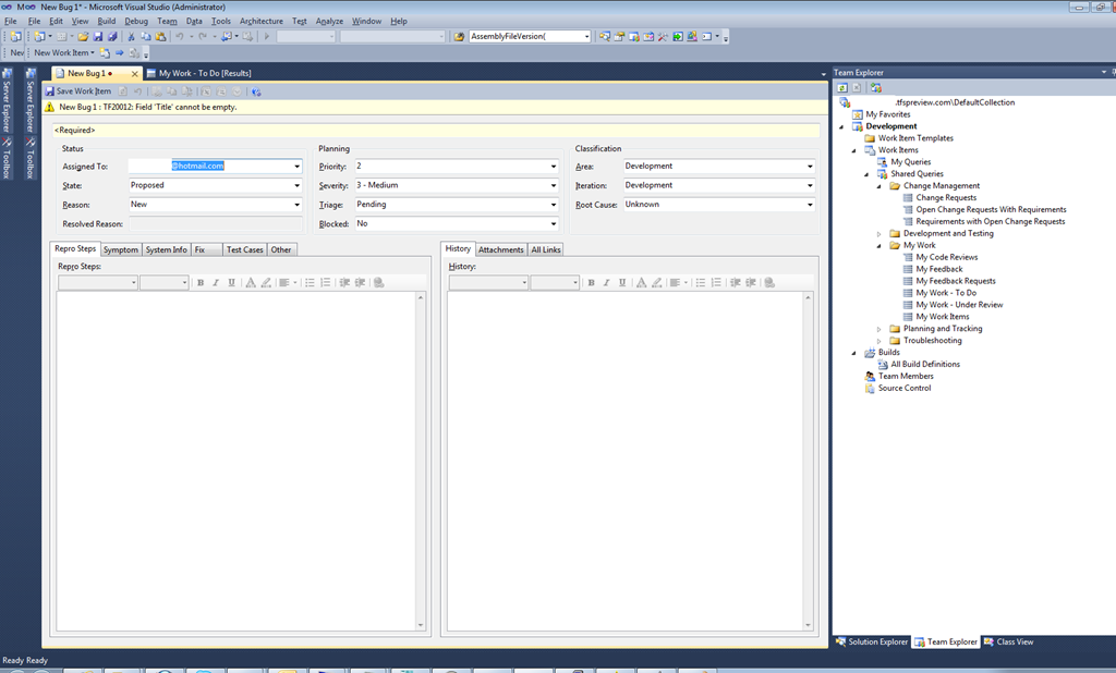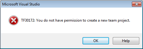 - Can’t create a new Team Project from inside Visual Studio: