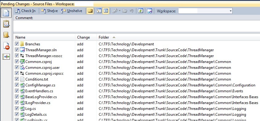 Now, once the solution is opened, you’ll see that the files are pending in the source control window: