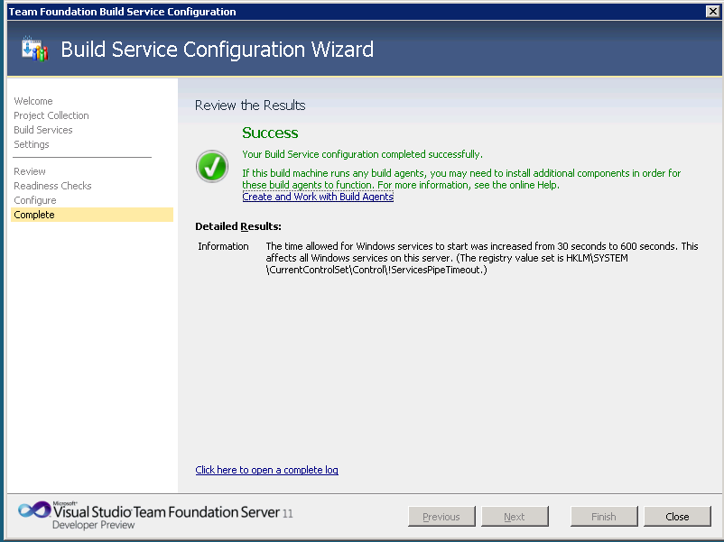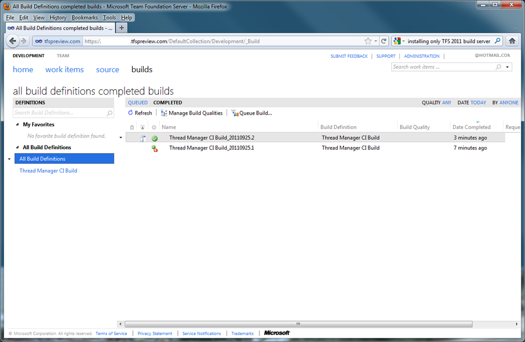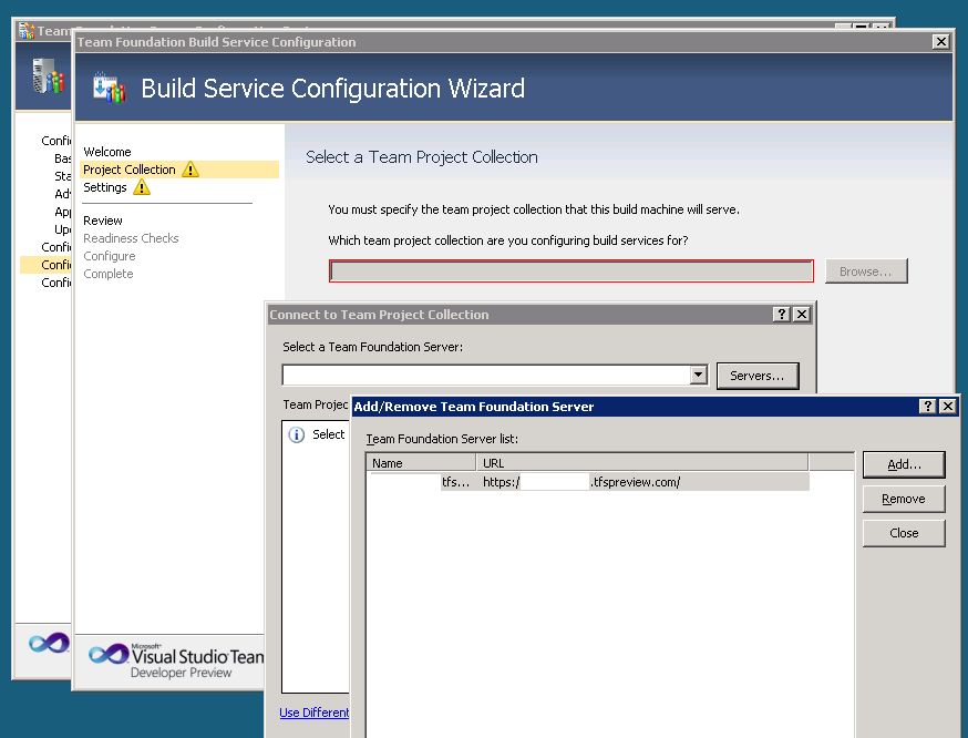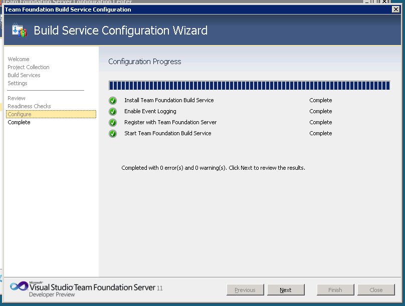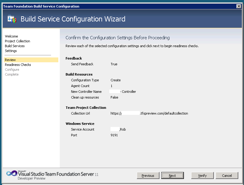 That said, I had no trouble at all in configuring the Build Service 2011 (Developer Preview) and the whole process from Visual Studio 2010 to TFS Azure to Team Build worked seamlessly the first time through, with no errors or installation show stoppers.