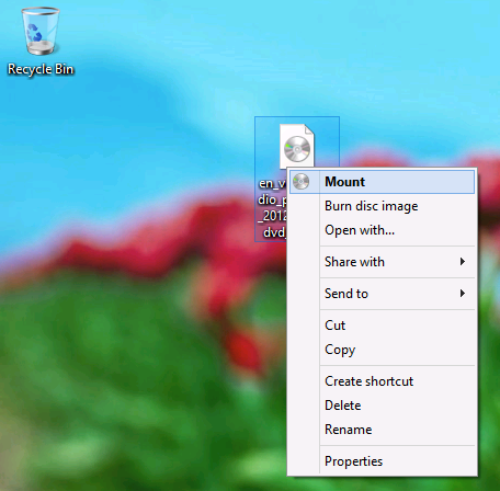 First, props to the Windows 8 team for including native support for mounting .ISO files. This makes the process of preparing to install Visual Studio 11 far easier: