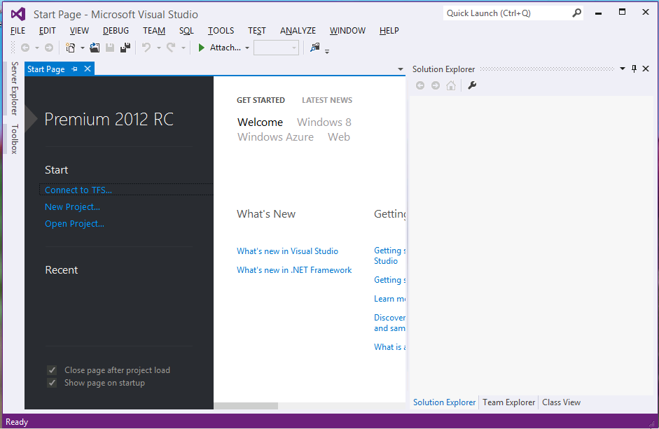 My main intent was to view the differences between the Public Beta and the Release Candidate edition. However, this time I decided to install the Visual Studio 11 Release Candidate as well. There’s been a lot of discussion about the upcoming release, and this is my first real look at the improvements and changes.