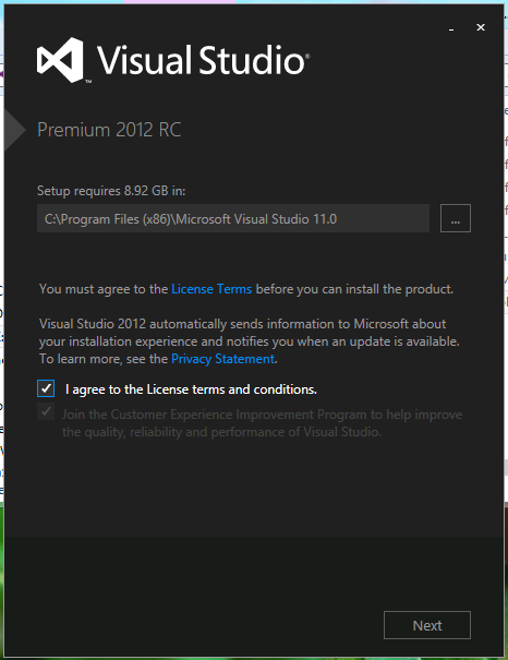 From here it is a simple matter of launching the installation program (with elevated credentials). This is the first time we’ll see the new Visual Studio 11 logo: