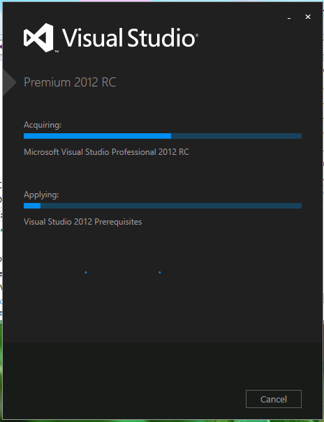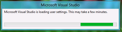 Once this annoying dialog has completed whatever it does, we get to see the Visual Studio 11 IDE in all its glory.
